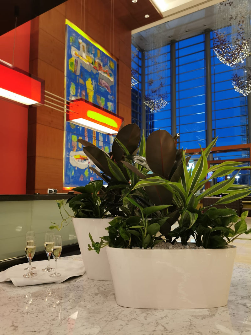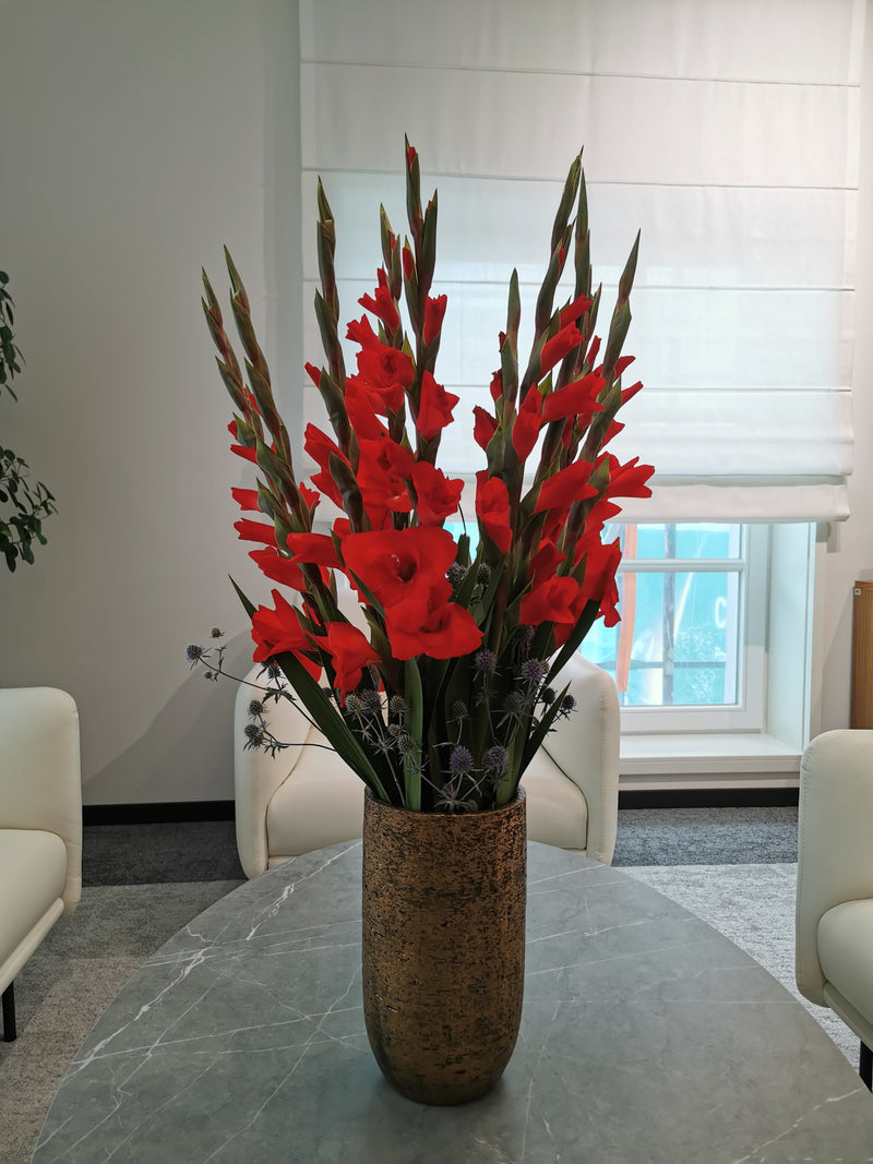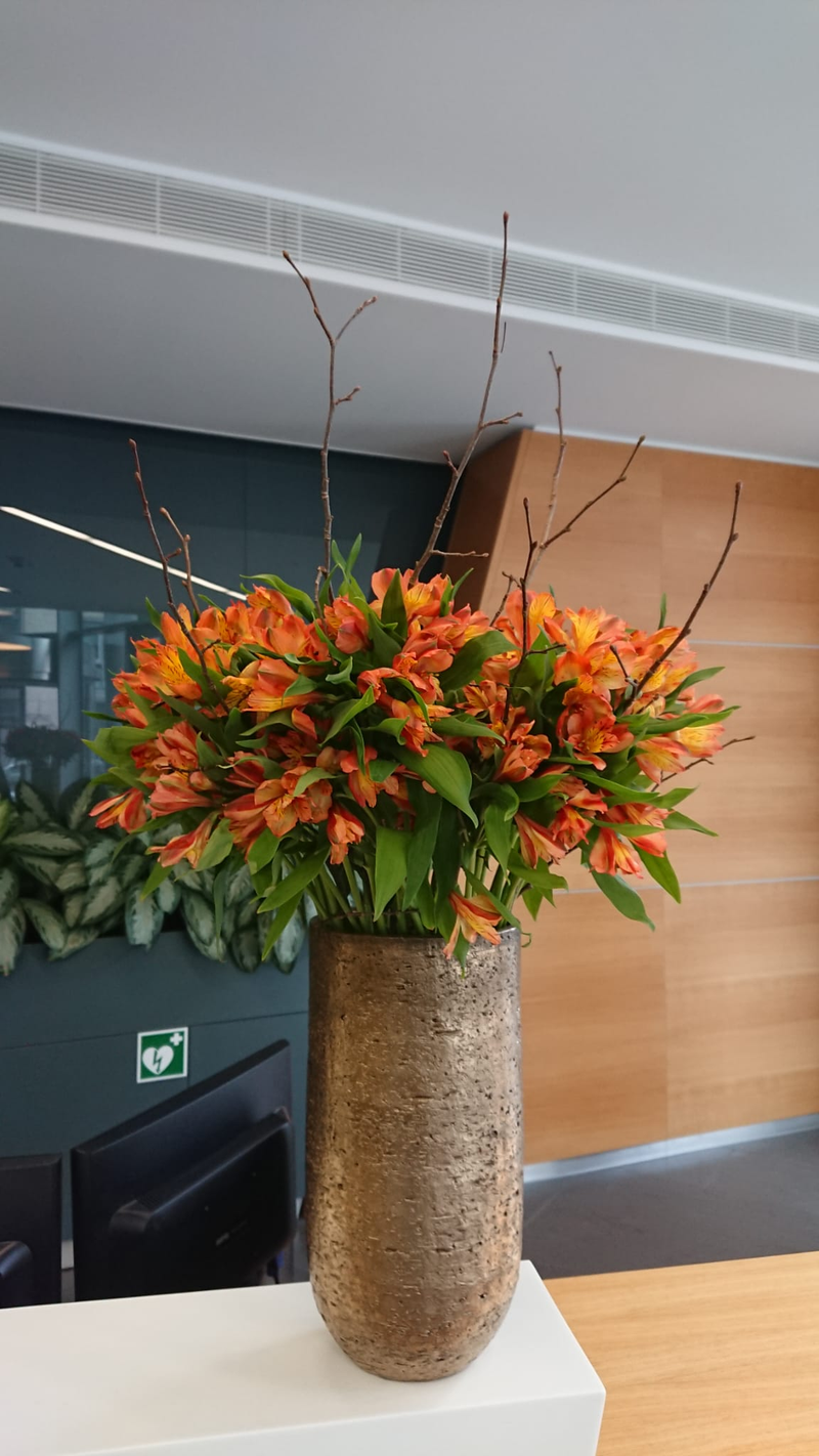Wykorzystujemy w aranżacjach zarówno kwiaty cięte, doniczkowe, jak i sztuczne lub